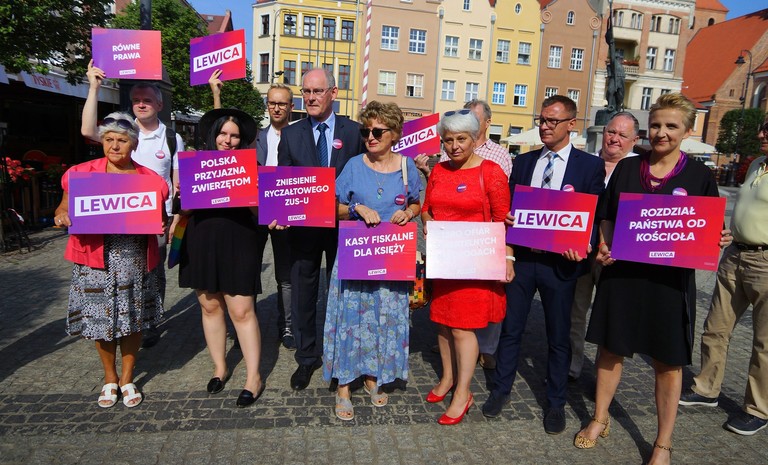 Kandydaci z listy Lewicy w okręgu 4, m.in. Krzysztof Gawkowski, Jan Szopiński, Michał Wysocki,
